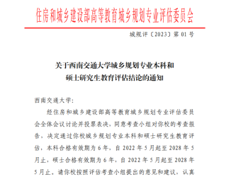 城乡规划专业本科和研究生教育评估获得六年期双优通过。