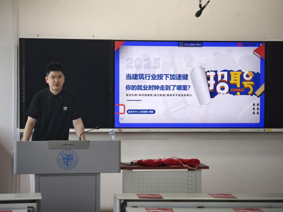 于2025年5月8日下午,在八号教学楼8535教室举办了“当建筑行业按下加速键,你的就业时钟调到了哪里”就业指导讲座。本次宣讲邀请了基准方中建筑设计有限公司人力资源部助理主任傅捷以及基准方中建筑设计有限公司的2024届布谷tv