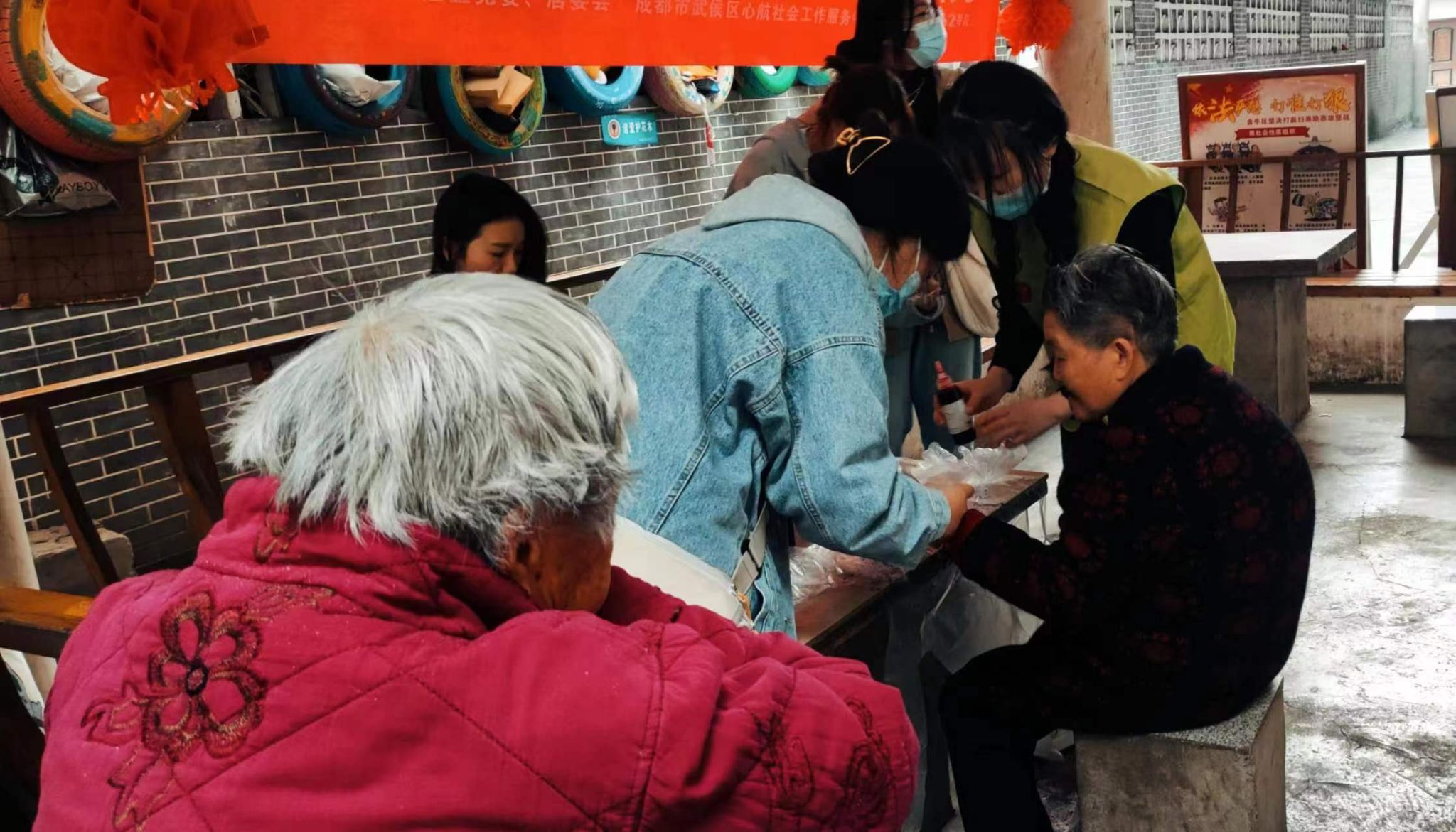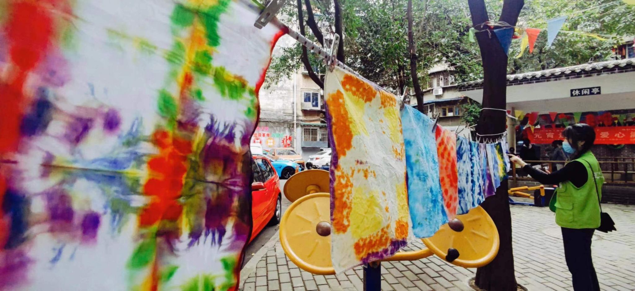 活动进行过程中,居民对于扎染体验抱有较高的积极性,大胆尝试不同的色彩搭配与扎染样式。