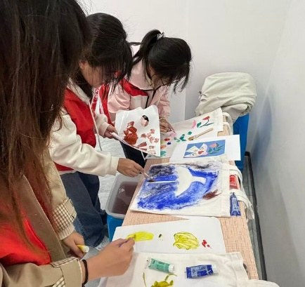 活动伊始,二十余名志愿者们为小朋友分发马甲、绘画工具以及想画的图片,而图片大部分为带有和平鸽的正能量主题。小朋友们活力满满,热情似火,“老师,我已经迫不及待了!”一位喜欢画画的小女孩笑着说道。随后,志愿者们耐心指导小朋友们用颜料和画笔在环保袋上创作,鼓励他们发挥想象力,用色彩表达对真善美的理解与热爱。志愿者们也按捺不住,亲自参与其中,在袋子上绘制出一幅幅充满创意的作品。活动共产生了二十余幅作品。其中,一位小女孩的“地球村”令大家印象深刻。几只栩栩如生的熊猫趴在地球上,憨态可掬,传递出中国与世界紧密相连的主题。