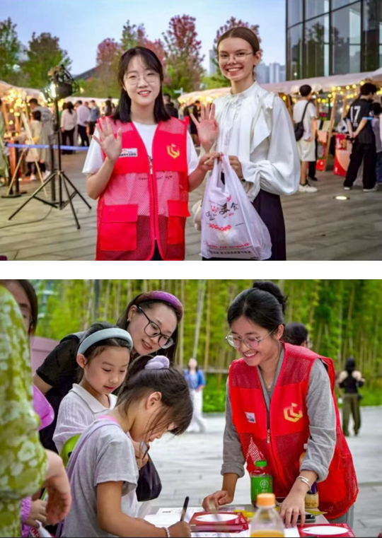 专业优势,志愿者们为参观艺术展览的国内外游客带来传统古建明信片手绘等文创体验,让文化服务更具深度。