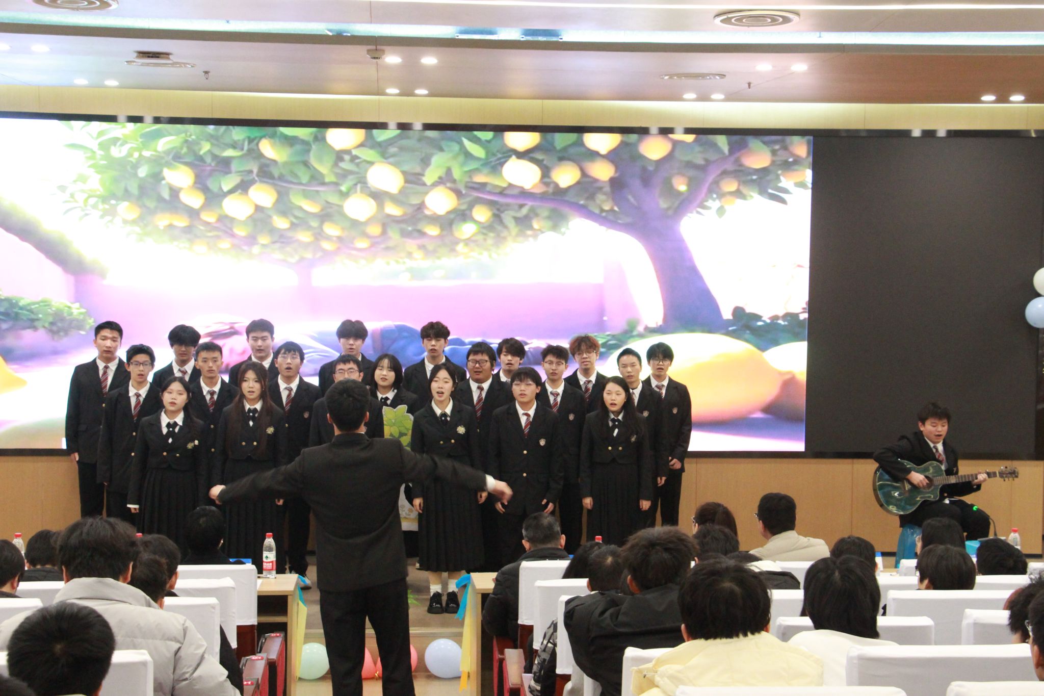 于2025年12月18日在图书馆一号报告厅成功举办2025级新生英语合唱大赛。出席本次活动的有学院党委副书记刘一杰、2025级各班班导师、布谷tv