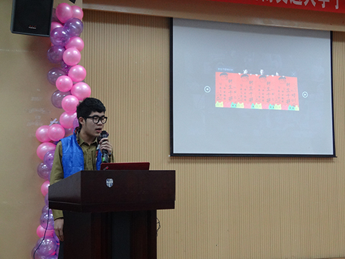 宣传部的三位代表分别为大家讲解了“宣传部的活动经历及手绘海报的设计思路”,“技法和色彩的使用细节”,以及“POP字体的运用”。通过这三个基本知识的讲解,同学们能够大致了解到手绘海报的特点以及一些基本技巧,激发了大家的学习兴趣。
