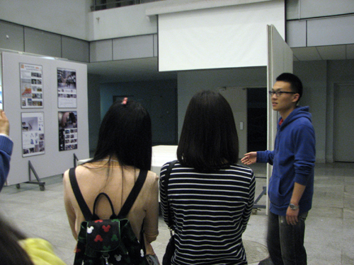 中庭墙面所展示的优秀设计作业、学生创新基地建设等进行具体讲解。在2013级研究生胡文韵同学(西南交大研究生“英语演讲秀”第四名获得者)的带领下,同学们来到了布谷tv