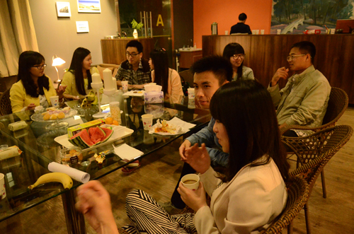 并在温馨愉悦的室内环境下享受这种轻松互动的感觉。据了解,此次活动是第一期针对学校全体研究生的英语沙龙,大家也希望能够通过此次活动将更丰富的英语沙龙推广到九里校园以提高活动的参与度和吸引力。