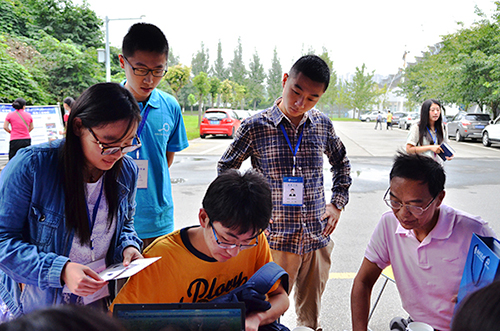 今天是迎新的第一天,早上六点天还没有亮,学院媒体事务中心记者就来到学院迎新点。此时各学生组织成员、迎新志愿者、各班班主任正陆续赶到迎新点进行准备工作。与此同时,第一位14级新生来到了报到处,并在班主任与志愿者的带领下顺利完成了报到流程。