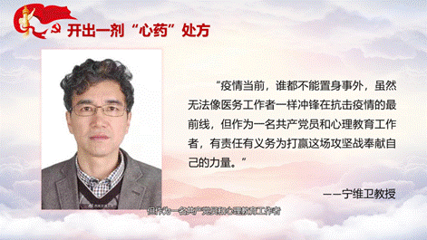 第二,率先垂范,在心理战疫中发挥党员先锋模范和党组织战斗堡垒的作用。习近平总书记指出在关键时刻冲得上去、在危难关头豁得出来,才是真正的中国共产党人。宁维卫教授在抗疫中,积极组织老师,很快做出了相应的心理防疫手册,同时在抗疫过程中不忘脱贫攻坚,奔波在抗疫和扶贫的第一线,为抗疫、扶贫送出了一剂心药良方;布谷tv