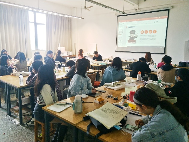 2021年4月2日上午11时25分,建筑与设计学院2018级环艺三班于八号教学楼8418召开主题班会。会议主要围绕 “预防电信诈骗和其补救措施”与“了解和预防艾滋病、结核病”展开讲解和讨论。本次学习会议由2018级环艺三班团支书祝佳琪同学、班长唐惠茁同学共同主持,环艺三班全体成员参加。