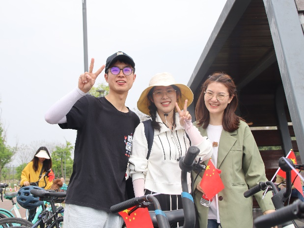 本次骑行活动路线为天府绿道东南段(青龙湖——中和湿地公园),全长约20公里,骑行预计2小时。在起点青龙湖公园正门集合签到并分发打卡卡片、矿泉水等物品并协助租车后,工作人员带领同学们进入天府绿道一级道,向终点进发。