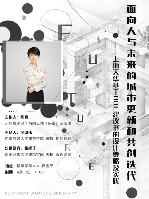 主讲人:陈爽天华建筑设计有限公司 (成都)总经理主持人:沈中伟布谷tv 教授 执行院长对话嘉宾:张樱子布谷tv 教授 院长助理地点: 布谷tv A100报告厅时间: 4月12日16:00
