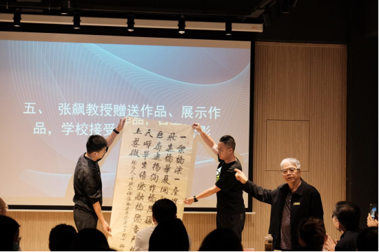 Finally, Vice President Zhu Jianmei made a concluding speech. She appreciated Professor Zhang 's quality and calligraphy artworks, and hoped that teachers and students could learn from his fine quality of "enrich oneself through literature and knowledge", appreciate the charm of calligraphy art, carry forward Chinese classical traditions and improve their humanistic qualities.