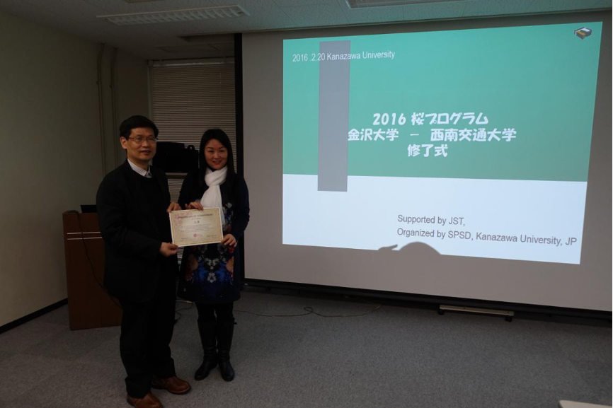 2. On behalf of Southwest Jiaotong University, Prof. Wan Xuan led some young teachers in our department to participate in the China-Japan Youth Science and Technology Exchange Program 2015 (Cherry Blossom Program), and carried out youth science and technology exchange activities with National Kanazawa University.