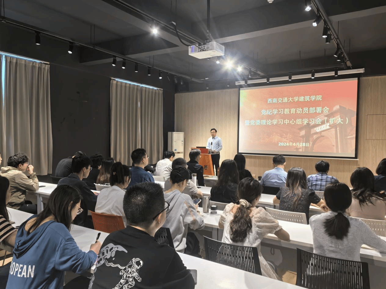 在犀浦校区8号教学楼A100报告厅召开了党纪学习教育动员部署会暨党委理论学习中心组(扩大)学习会议。学院领导班子、党委委员、纪委委员、科职干部、辅导员及师生党支部书记参加会议。学院党委书记胡伟主持会议并做党纪学习教育动员部署讲话。