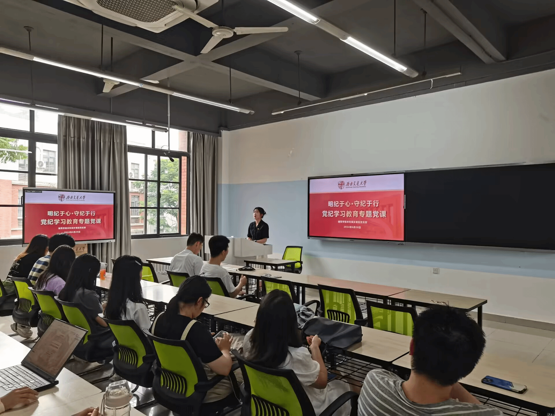 为深入学习我们党的纪律条例,强化纪律意识、加强自我约束、提高免疫能力,增强政治定力、纪律定力、道德定力、抵腐定力,始终做到忠诚干净担当。2024年6月28日下午16:30,本科城乡规划党支部在X9303开展了“明纪于心守纪于行”党纪学习教育专题党课。