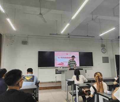 学习开始,由谢仕菊同志向支部成员介绍中国共产党的建党纪念日与七一建党精神,并强调我们党始终坚持党要管党、全面从严治党,不断把新时代党的建设新的伟大工程推向前进。随后由刘雨轩、杨奕浩、阙俊龙三位积极分子进行“七一”主题学习内容的知识分享,并推荐了相关红色影视剧和优秀读物。本次政治学习的顺利举行,帮助支部成员深刻领悟了习近平总书记“七一”重要讲话精神,理解了党赋予青年的历史使命,明白了新时代青年的责任与担当。
