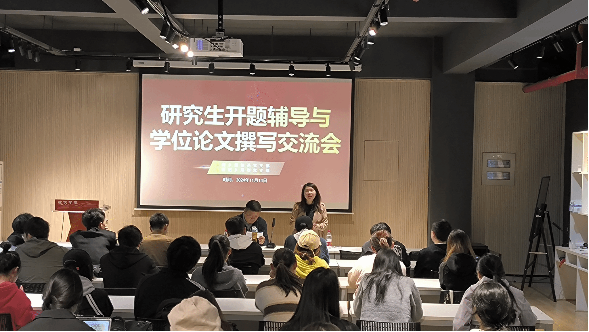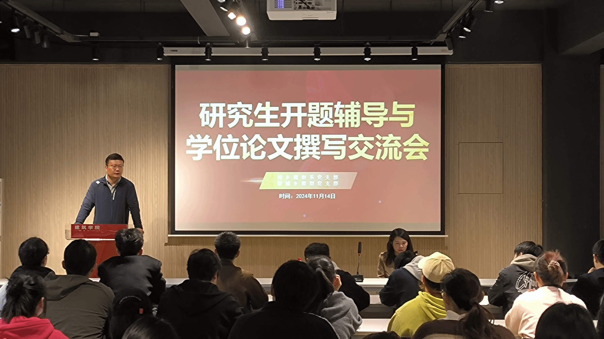 A100报告厅成功举办了“研究生开题辅导与学位论文撰写交流会”主题党日活动。活动由城乡规划系党支部书记于洋教授主持。