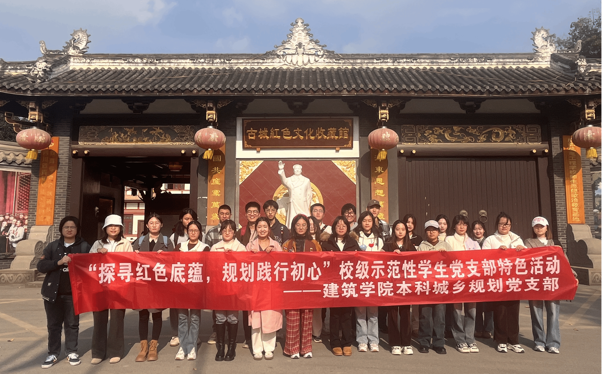 2024年11月21日下午14:00,支部组织开展“探寻红色底蕴,规划践行初心”红色研学基地文化规划设计系列活动,集体前往成都市郫都区三道堰镇古城村的古城红色文化博物馆调研参观。