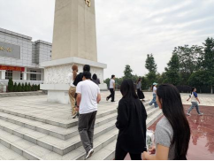 活动首站,学院党委书记胡伟,专职组织员王少婧,辅导员贾世南及60名新党员集合前往郫都区烈士陵园祭奠缅怀革命英烈。纪念馆庄严肃穆,翠柏环绕,烈士纪念碑巍峨耸立,仿佛在诉说着那段波澜壮阔的革命历史。在胡伟的带领下,党员们宣读、重温入党誓词,行鞠躬礼并肃立默哀,依次向烈士纪念碑敬献鲜花,表达对革命先烈的崇高敬意和深切悼念。
