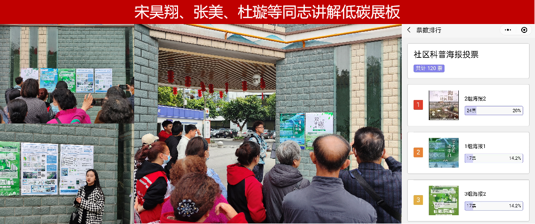 科普过程中,社区居民围绕海绵社区与低碳园林的相关概念、范围、如何构建等进行发问,负责宣讲的同志们对大家提出的疑惑给予了耐心的解答,让社区居民“有惑而来,满意而归”。科普结束后,通过线上投票评选的形式选出大家心目中的优秀展板并公布。