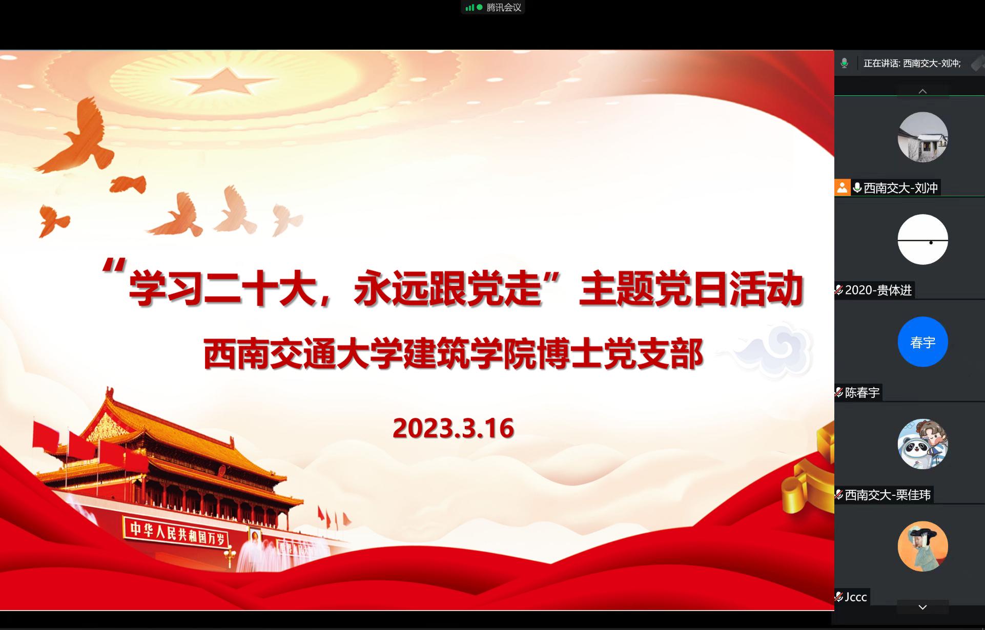 博士党支部采用腾讯会议的形式组织开展“学习党的二十大,永远跟党走”主题党日活动。
